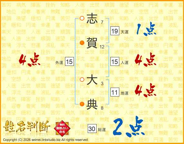 志賀大典さんの総運は30画の2点!