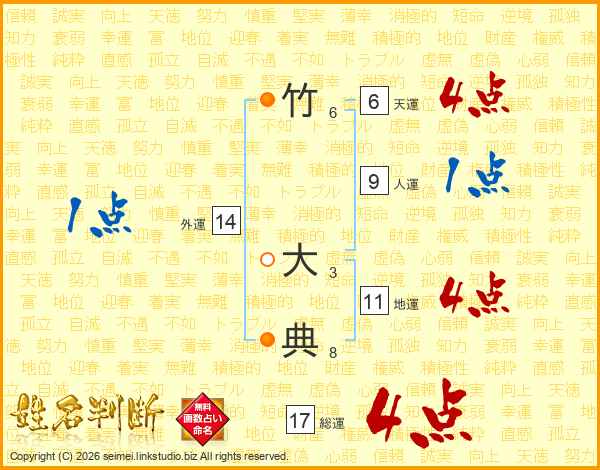 竹大典さんの総運は17画の4点!