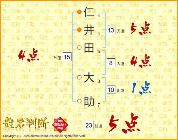 仁(4画)井(4画)田(5画) 大(3画)助(7画)