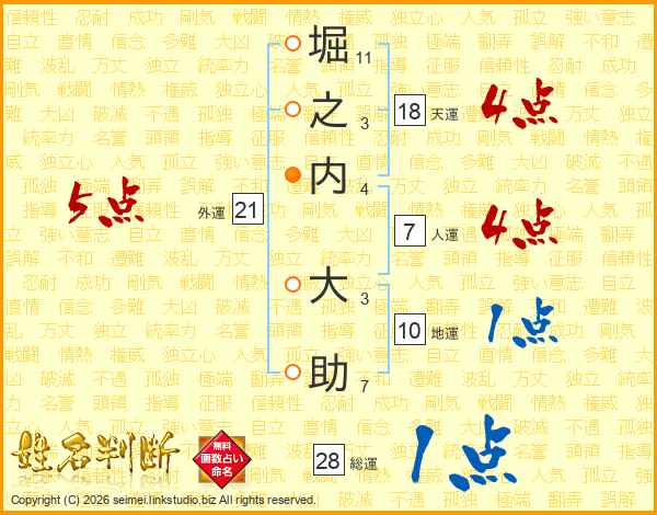 堀之内大助さんの総運は28画の1点!