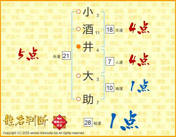 小(3画)酒(11画)井(4画) 大(3画)助(7画)