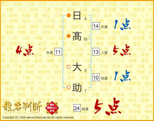 日(4画)髙(10画) 大(3画)助(7画)