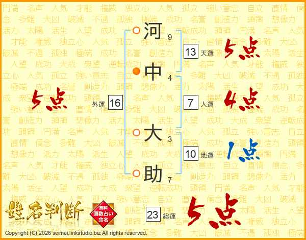 河中大助さんの天運は13画の5点!