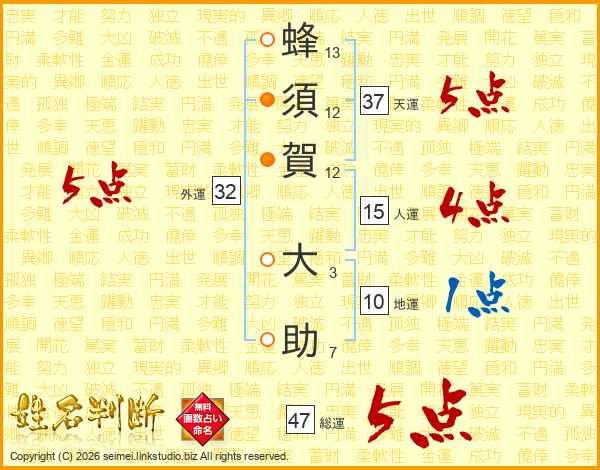 蜂須賀大助さんの総運は47画の5点!