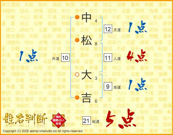 中松大吉さんの総運は21画の5点!