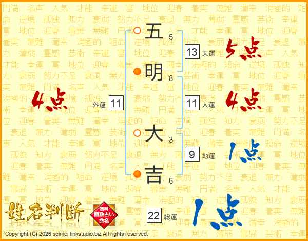 五明大吉さんの総運は22画の1点!
