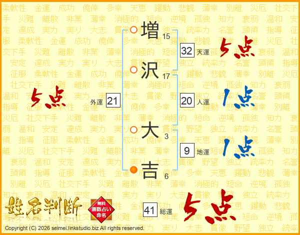 増沢大吉さんの総運は41画の5点!