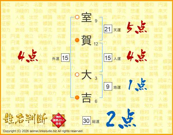 室賀大吉さんの総運は30画の2点!