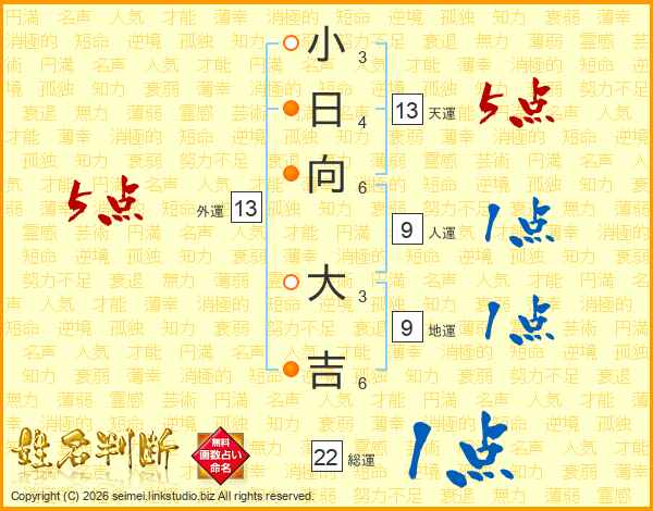 小(3画)日(4画)向(6画) 大(3画)吉(6画)