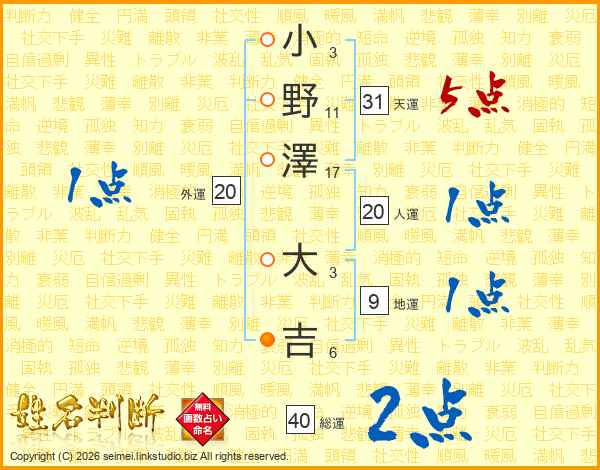 小野澤大吉さんの天運は31画の5点!