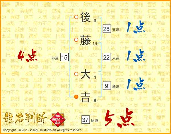 後藤大吉さんの総運は37画の5点!