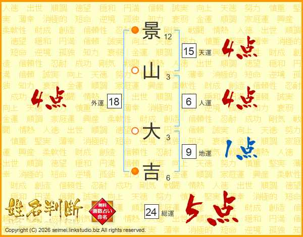 景山大吉さんの総運は24画の5点!