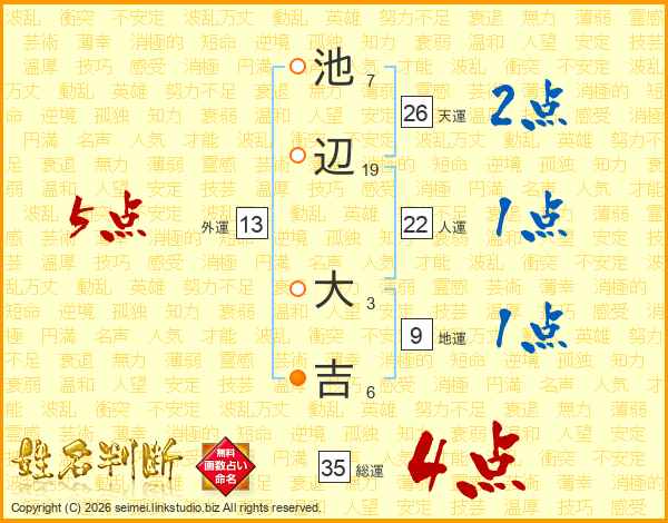 池辺大吉さんの総運は35画の4点!