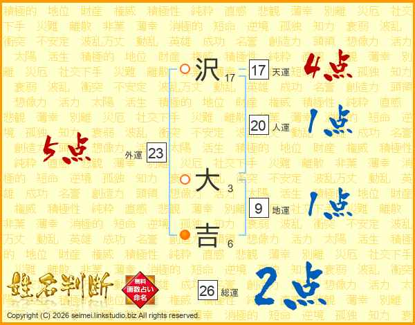 沢大吉さんの総運は26画の2点!