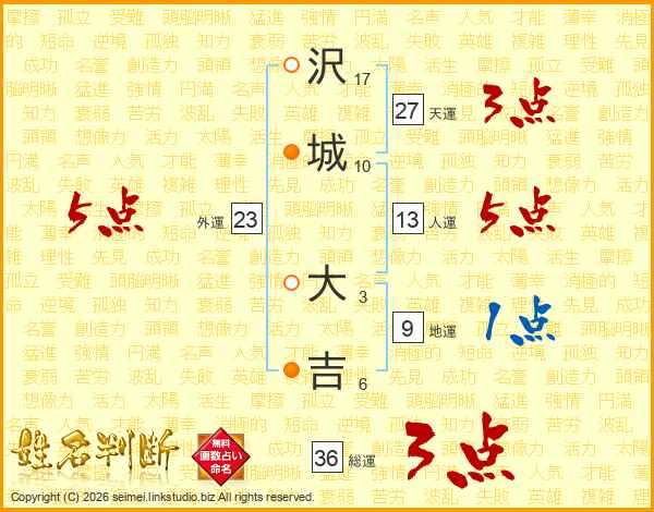 沢(17画)城(10画) 大(3画)吉(6画)