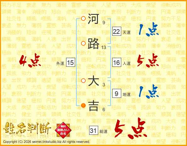 河路大吉さんの総運は31画の5点!