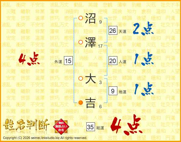 沼澤大吉さんの天運は26画の2点!