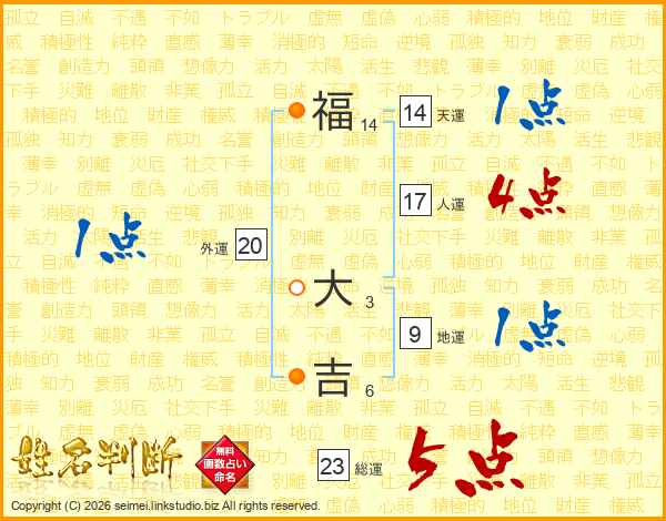 福大吉さんの天運は14画の1点!