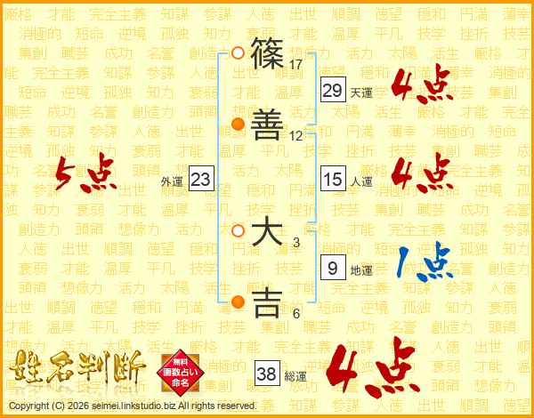 篠善大吉さんの総運は38画の4点!