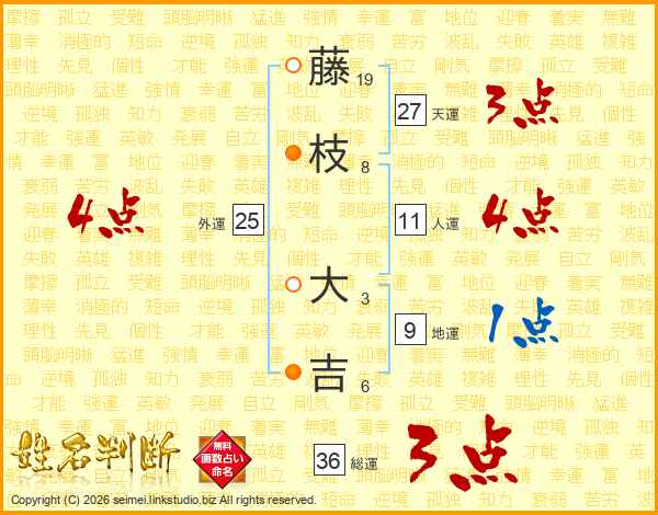 藤(19画)枝(8画) 大(3画)吉(6画)
