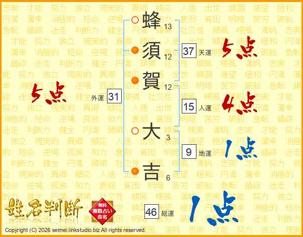 蜂須賀大吉さんの総運は46画の1点!