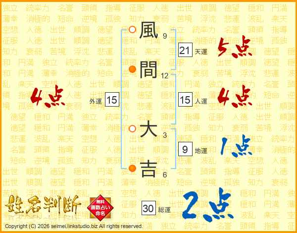 風間大吉さんの総運は30画の2点!