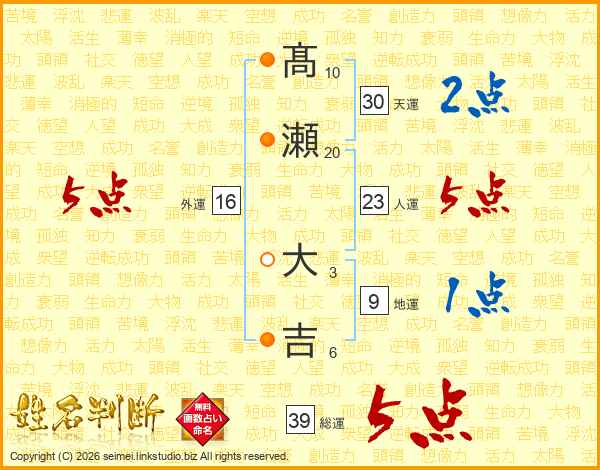 髙瀬大吉さんの総運は39画の5点!