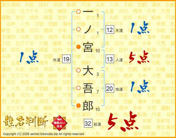 一ノ宮大吾郎さんの総運は32画の5点!