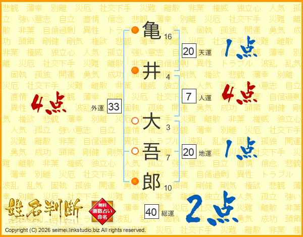 亀井大吾郎さんの外運は33画の4点!