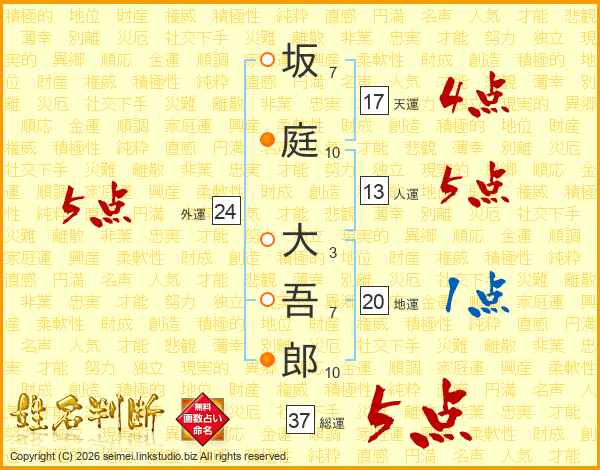 坂庭大吾郎さんの総運は37画の5点!