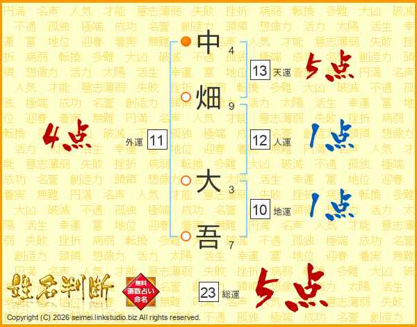 中畑大吾さんの総運は23画の5点!