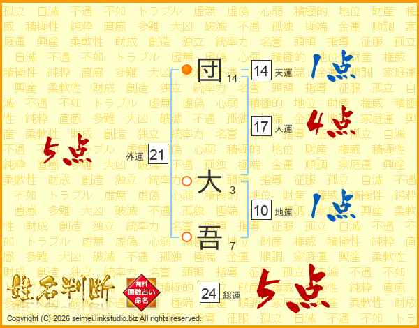 団大吾さんの総運は24画の5点!
