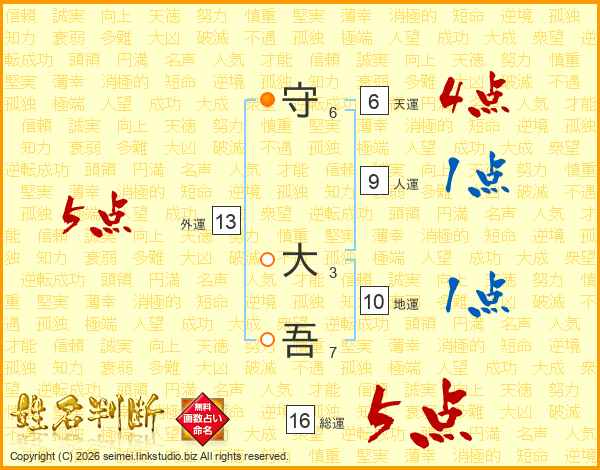 守大吾さんの総運は16画の5点!