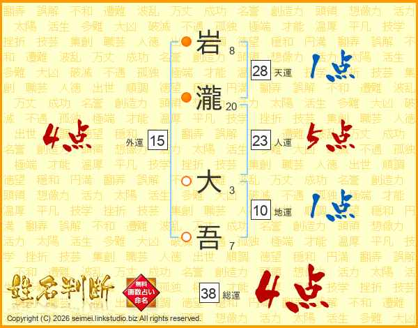 岩瀧大吾さんの総運は38画の4点!