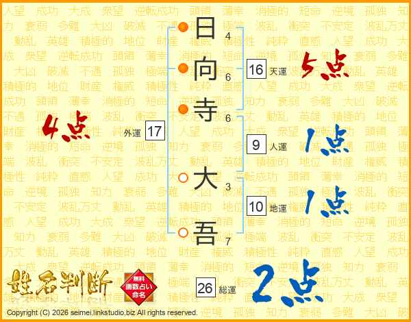 日向寺大吾さんの総運は26画の2点!