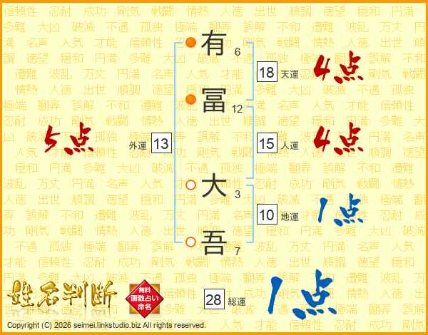 有冨大吾さんの総運は28画の1点!