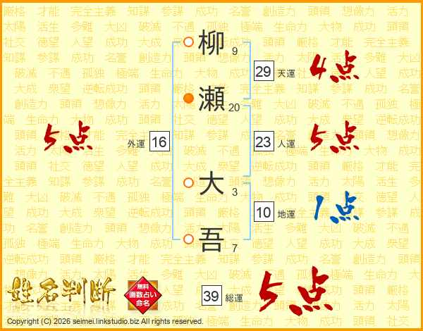 柳瀬大吾さんの総運は39画の5点!