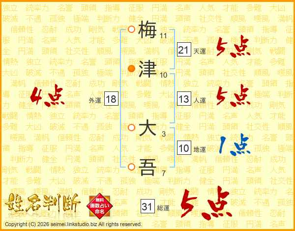 梅津大吾さんの天運は21画の5点!