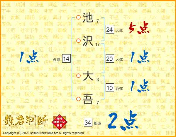 池沢大吾さんの総運は34画の2点!