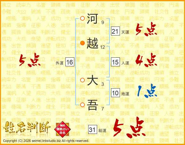 河越大吾さんの総運は31画の5点!