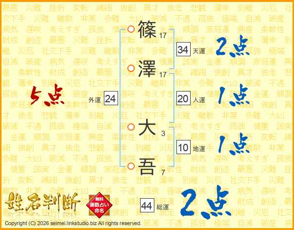 篠澤大吾さんの外運は24画の5点!