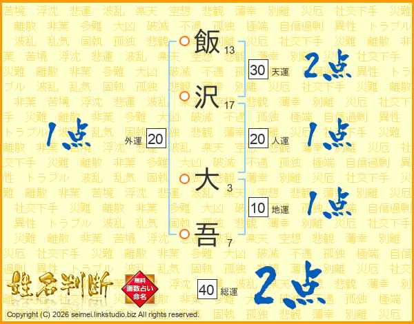飯沢大吾さんの天運は30画の2点!