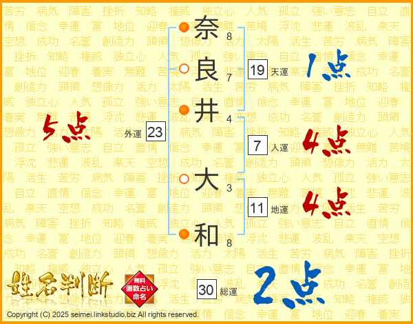 奈良井大和さんの総運は30画の2点!