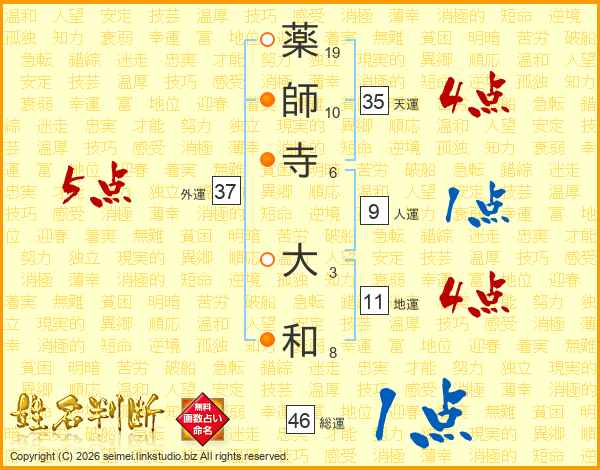 薬師寺大和さんの外運は37画の5点!