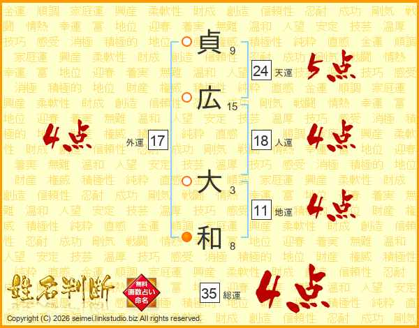 貞広大和さんの総運は35画の4点!