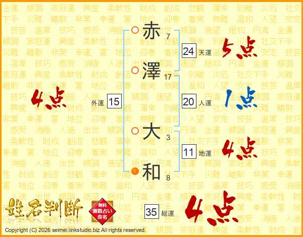 赤澤大和さんの総運は35画の4点!