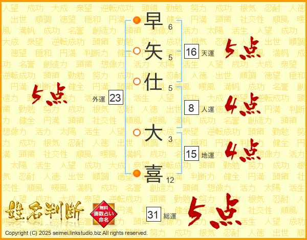 早矢仕大喜さんの総運は31画の5点!