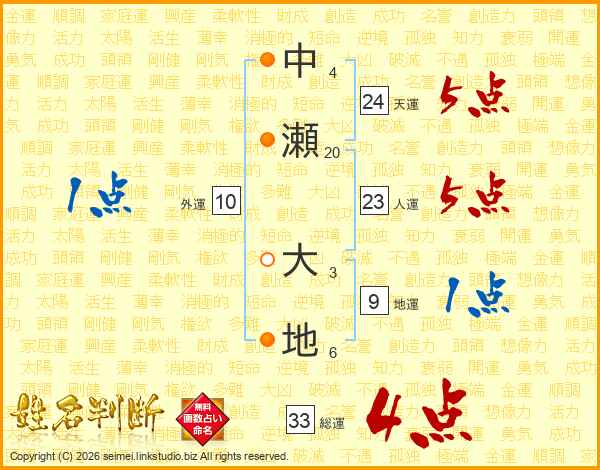 中瀬大地さんの総運は33画の4点!