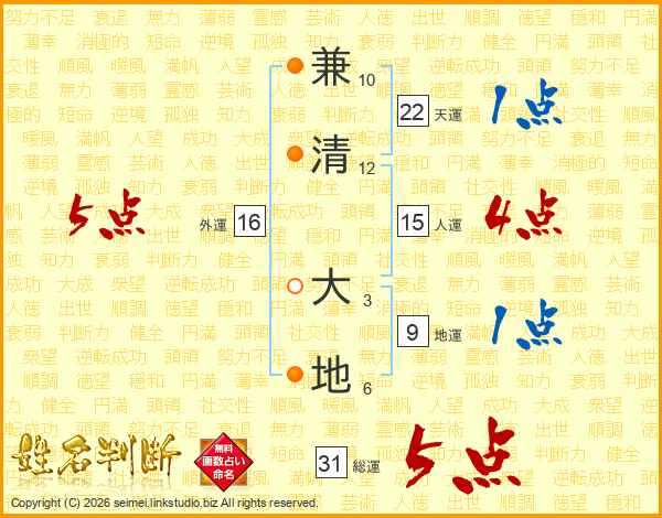 兼清大地さんの総運は31画の5点!