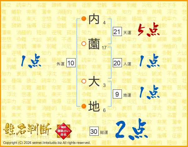 内薗大地さんの天運は21画の5点!